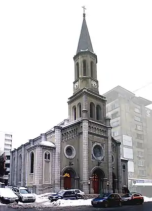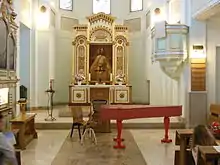 Este o bazilică cu trei nave, de tip hală, al cărei interior se configurează ca spațiu unitar, cu galerii de jur împrejur, formând un dreptunghi, căruia i s-a prevăzut pe latura estică o nișă pentru altar.[4]