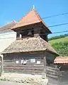 La sud de biserică se găsește un turn clopotniță din lemn, în care se păstrează două clopote medievale databile în secolul XVI. Ele sunt adevărate capodopere artistice pentru puterea de producție din acea vreme. Pe unul dintre ele s-a scris în relief, cu majuscule O rex gloriae veni cum. Tot la sud de lăcașul de cult se află clădirea fostei școli confesionale evanghelice, azi biserică greco-catolică, și casa parohială construită, în 1871, de meșterul Johann Gunn, cu sprijinul Asociației Gustav Adolf, așa cum reiese de pe placa aflată pe fațada vestică. Dintr-un inventar al bisericii luterane, reiese că, în 30 noiembrie 1928, parohia deținea în lăcașul de cult o strană, 14 bănci, patru lustre, un harmonium, un potir și un pahar iar în școală trei bănci, o hartă și patru tablouri.