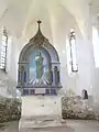 El se compune dintr-un scrin central, încadrat de două tablouri fixe, două aripi fixe, două canaturi mobile și o predelă. Scrinul conține o figură de Madonă zveltă, drapată cu o mantie dispusă în două grupuri de falduri, pornind de la brațul stâng pe care ține pruncul. Astfel, liniile converg către micul Isus. Caracteristic este că faldurile lungi, dominante, sunt întrerupte, în diferite puncte, de jocul cutelor mărunte, ecouri ale modului de realizare a drapajului din faza manierismului . Pe tablourile din jurul scrinului sunt identificabili: Sfânta Ana, Sfântul Gheorghe, Sfânta Margareta și regele Ștefan. Laturile interioare ale canaturilor poartă scenele Bunavestirea, Nașterea și Închinarea magilor. În exterior și pe laturile fixe sunt zugrăvite opt scene din Patimi: Cina, Muntele măslinilor, Biciuirea, Încoronarea cu spini, Ducerea crucii, Răstignirea, Luarea de pe cruce și Învierea. Pe predelă este reprezentată Despărțirea lui Isus de Maria, scenă așezată într-un peisaj bogat, copiat după o stampă a lui Albrecht Dürer. Interiorul bisericii găzduiește acum un altar realizat în 1909, care a înlocuit altarul din secolul al XVI-lea. În cor se află piatra funerară a lui Ioannis Tordai, cu inscripție în limba latină.