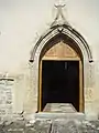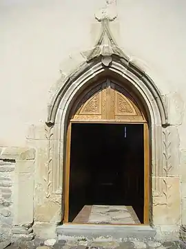 Portalul faţadei vestice cu ancadramentul gotic, încheiat în arc frânt
