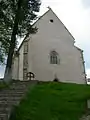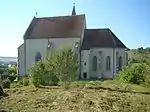 Faţada sudică a navei, cu două ferestre bipartite, cu ancadramente de piatră, încheiate în arc frânt, decorate cu muluri, în spiritul goticului târziu