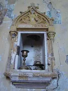Tabernacolul gotic, aflat pe latura de nord a corului, cu relieful Mântuitorului acoperit cu vopsea după Reforma protestantă.