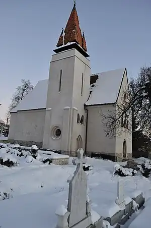 Biserica a fost restaurată în anul 1925, sub patronajul regelui Ferdinand al României, după planurile cunoscutului arhitectului ardelean maghiar, de origine germană, din Banat, Károly Kós, când a fost ridicat și turnul (clopotnița). Textul inscripției de pe placa aplicată pe un perete al bisericii după finisarea renovărilor din anul 1925:
