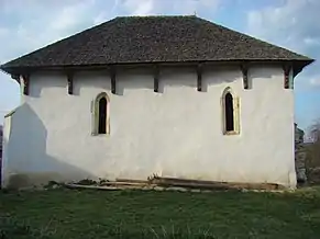 Satul era o așezare catolică pură în Evul Mediu. În 1334, preotul Péter era menționat în lista dijmelor papale. În secolul al XIV-lea exista o biserică de piatră, reconstruită în stil gotic în secolul următor. În momentul Reformei locuitorii au trecut la unitarianism. Așezarea și biserica au fost distruse în 1602 de trupele lui Gheorghe Basta. Populația s-a întors la calvinism în prima jumătate a secolului al XVII-lea, biserica fiind ruinată la acea vreme (1644)[3]. A fost reparată în 1717, dar în 1828 deteriorarea sa era din nou înregistrată. În 1976, datorită reducerii drastice a numărului de enoriași, biserica era într-o stare complet inutilizabilă, cu un acoperiș deteriorat și tencuiala căzută. Biserica a beneficiat de o reabilitare în 1992.[4]