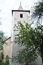 Biserica datează din secolul al XIII-lea, inițial romano-catolică. Populația catolică medievală a fost reformată în timpul Reformei, împreună cu biserica. Sub tencuială au fost descoperite urme de picturi murale. În anul 1735 a fost parțial reconstruită. În 1750, meșterul sas din Cluj, János Umling, a pictat noile bănci.