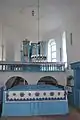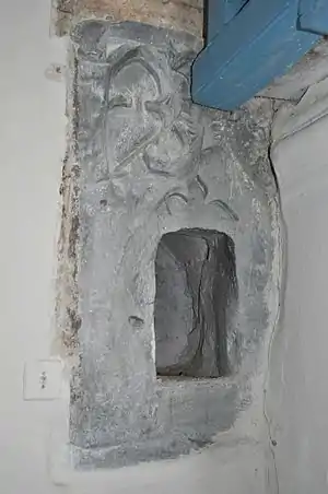 În partea estică al bisericii lângă orgă se află patru coloane sculptate din piatră, două din ele au ornamente în formă de pasăre, respectiv de om, iar celelalte au ornamente vegetale (stejar și foi de dafin).