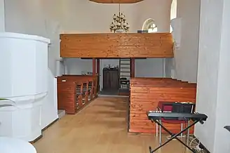 Clopotnița a fost construită lângă biserică, în anul 1867. În ea se află trei clopote. Cel mai vechi are inscripția: „1737 D.7.MA1.CUI Peas”. Al doilea clopot a fost realizat în 1798, iar al treilea în 1884, donat bisericii de către pastorul Farkas Csiszár și soția sa, Juliánna Kovács.