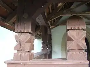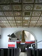 În 1742, János Vintze a comandat coroana octogonală a amvonului, care a fost refăcută în 1764. Pe tavanul de lemn al navei una dintre casete poartă o inscripție cu numele lui Lőrinc Umling: „TOTUM HOC O / PUS LAQEUR / ARIS AB (...) / LAURENT / UMLING / INIȚIATIV°