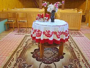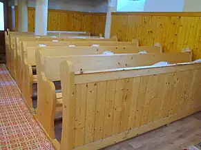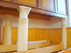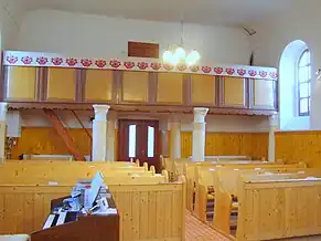 Biserica medievală, care nu avea turn, a fost demolată în 1794, an în care a început construirea actualei biserici. Amvonul său din 1693 este păstrat de la biserica anterioară[1]. În 1813 toate clădirile din sat, cu excepția bisericii, au fost distruse de un incendiu.