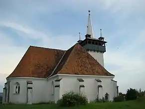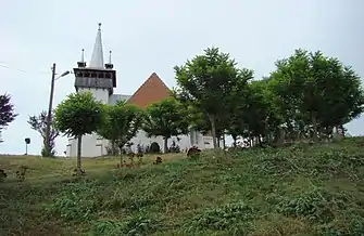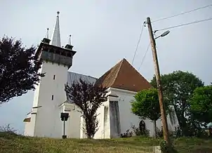 Biserica a fost construită în secolul al XIII-lea. Intrarea de vest a fost realizată în secolul XVI, în stil gotic. Populația maghiară medievală a satului a fost convertită la credința reformată în același secol. După devastările produse de invazia tătarilor, biserica a fost reconstruită. De-a lungul secolelor, biserica a fost renovată de mai multe ori. Prin urmare, numai închiderea semicirculară a altarului își păstrează forma inițială. În partea centrală a bolții, stema familiei indică identitatea constructorului: „Ladislau Kemeny de Gyeromonostor 1702”. În anul 1918 biserica a fost renovată cu ajutorul Comitetului pentru conservarea monumentelor, pe baza planurilor arhitectului István Müller, cu ajutorul donațiilor credincioșilor. În timpul acestei renovări, în locul clopotniței de lemn a fost construit un turn de piatră proiectat de Károly Kós[3].