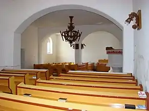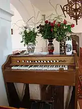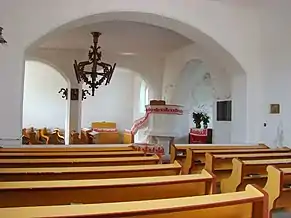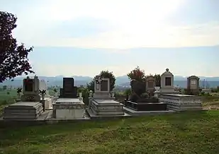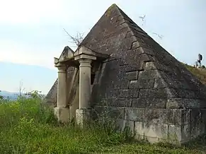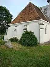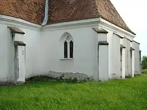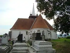 În grădina bisericii se află cripta în formă de piramidă a familiei Kemény, monument istoric.