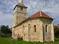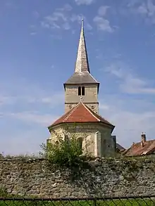 Monumentul medieval datează din secolul al XIII-lea. În secolul al XVI-lea biserica a fost prevăzută cu un sistem de apărare, format dintr-un zid de piatră și un donjon, rezultat din transformarea turnului bisericii. Zidul ce înconjoară biserica, ridicat din bolovani legați cu mortar, are o formă ovală, cu o lungime de 64 m și lată de 55 m. Zidurile au o grosime între 1,10-1,25 m, fiind susținute de contraforturi interioare dispuse la 20 m unul de celălalt.