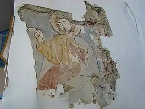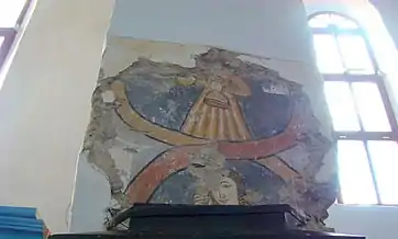 Despre picturile murale ale bisericii din Fântânele există informații încă din anii 1894 și 1906, dar decopertările cu intenția prezentării lor au fost efectuate în 1982 de către László Dávid, Fragmentul cel mai important s-a găsit în interior, pe peretele sudic al navei, lângă tribună, identificat de Dávid ca Imago Pietatis, o versiune a scenei Vir Dolorum: figura lui Isus se ridică dintr-un sarcofag de culoare roz, capul îi este aplecat, mâinile sunt încrucișate peste marginea sarcofagului[2].