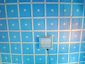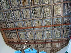 În cor se remarcă tavanul cu 8x11 de casete. Pe caseta-ladă din mijloc apare blazonul cu unicorn al comanditarului János Gáspár de Șuveica și inscripția de datare 1625. Partea centrală a tavanului, îndoită în jos, a fost sprijinită în 1821 de câteva grinzi transversale. Pe casetele de diferite lungimi apar flori în compoziții simetrice, primul rând de casete fiind decorat cu motivul solzilor de pește. În mai multe locuri apar completări ale tavanului, efectuate cu bucăți din casete mai vechi. În opinia lui Lajos Kelemen, tavanul ar fi opera pictorului János Egerházi de Band, pictor care a activat și la curtea princiară.