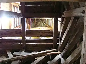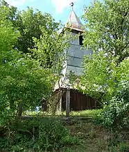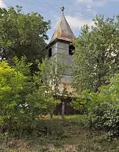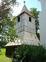 Clopotnița de lemn alăturată datează, probabil, din secolul al XVII-lea.