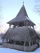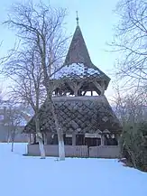 Alăturat, la sud de biserică, se află o clopotniță de lemn, monument istoric, de 9,5 metri înălțime, în care se află două clopote. Clopotnița, datând din secolul XVIII, a fost reparată în anul 1948, conform inscripției de pe una dintre grinzi: „A HARANGLAB JAV 1948 SZILAGYI JÓZSEF: KELEMEN JA- / LELK SZABÓ LÕRINC GONDN. NOS: IFJÚ SZILÁGYI JÓZSEF / BARABÁSI DOMOKOS: V BARABASI / ÁRPÁD CSEGEDI ÁRPÁD … BÉLA / 1948 URAM SEGÉLJ![2]”