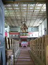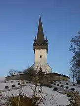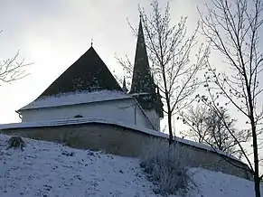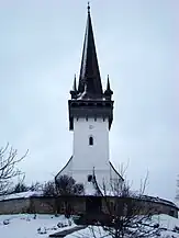 Biserica este situată pe o înălțime din centrul satului. Este construită din piatră de calcar si are un zid înconjurător care datează din secolul XIV[2], actuala biserică fiind construită pe fundația unei biserici mai vechi. Tavanul bisericii este realizat de faimosul meșter sas Lorenz Umling cel Batrân, tâmplar stabilit la Cluj, autorul casetelor policrome pentru mai multe biserici reformate din zona Cluj-Huedin-Călata.