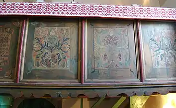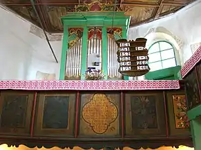Biserica avea o orgă construită în anii 1700, dar a fost distrusă în timpul celui de-al doilea război mondial. Cele două galerii și coroana amvonului sunt din 1760-1761. Tavanul casetat a fost realizat în anul 1759[2].