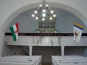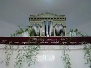 În 1332 avea o biserică parohială, preotul său, János, fiind menționat în lista dijmelor papale. Biserica medievală a fost construită în stil gotic. Zidurile erau împodobite cu picturi murale și inscripții. Toate acestea au dispărut atunci când biserica, amenințată cu prăbușirea, a fost demolată în 1794, ulterior fiind construită una nouă între 1833-1839. Multe oseminte umane au fost găsite în timpul construcției, dovedind că cimitirele erau așezate inițial în jurul bisericilor