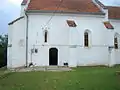 Forma actuală a bisericii datează din secolul al XIV-lea. Se compune din două părți: nava și sanctuarul. Nava este înconjurată de șase piliere lipite de zid în exterior. Numai cele două uși, una zidită, cât și un geam din navă, amintesc de specificul ardelean al arhitecturii romanice. În partea exterioară a navei, pe lângă pilierul din stânga al intrării sudice, găsim zidit un fragment dintr-un relief roman. Și lângă intrarea vestică, zidită în prezent, se află un relief roman, de fapt o piatră funerară. Acest relief, prin figurile pe care le reprezintă, dovedește cultivarea viței de vie în zonă și în localitate. Partea superioară a reliefului reprezintă un legionar roman încălecând un cal, iar în partea inferioară un băștinaș încadrat de viță de vie, încărcată cu ciorchini de struguri. Interiorul sanctuarului este construit în stil gotic. Nervurile pornite din cheile de boltă ale sanctuarului sunt așezate în două puncte de sprijin simetrice, sub formă de stea. Din cele două geamuri ale sanctuarului, unul este ornamentat cu figuri geometrice. Arcul de triumf dintre navă și sanctuar este construit în stil gotic. Balcoanele din navă și sanctuar sunt construite în anul 1763. Ornamentația pictată a balcoanelor are la bază motive populare maghiare stilizate. Amvonul este construit din piatră și cărămidă. Inscripții pe zidurile bisericii nu sunt, nici picture murale nu există. Biserica nu a avut și nu are turn nici în prezent.