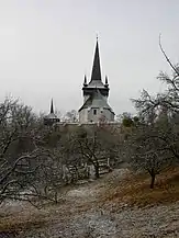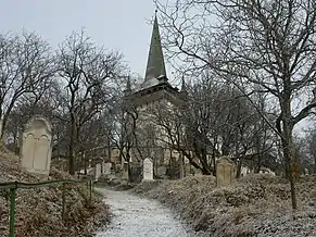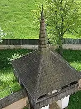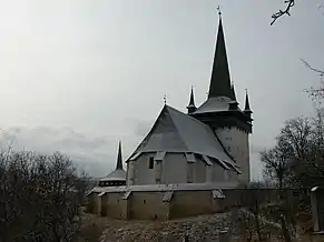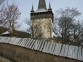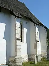 Din cauza invaziilor tătarilor biserica a fost întărită cu ziduri duble din piatră, ale căror guri de tragere și turnuri cu coif și balustradă de lemn încă se păstrează. Cu ocazia renovărilor din a doua parte a secolului XX a fost descoperită o cameră cu osemintele sutelor de persoane ucise în timpul unei invazii tătărești. În memoria lor, în curtea bisericii au fost ridicați trei stâlpi funerari sculptați.[2]
