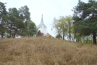 Biserica a fost construită în stil baroc târziu în anul 1792. A fost renovată în 1874. Este principala atracție a localității, alături de poarta barocă a fostului conac Czirjék[3].