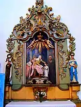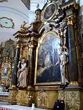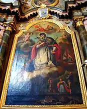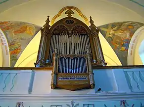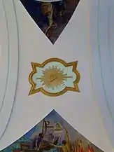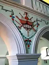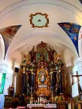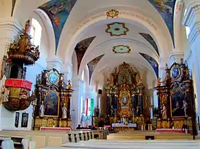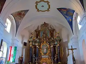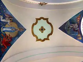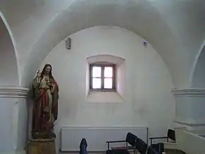 Partea centrală a bolții cilindrice este decorată cu stucaturi baroce, iar pe suprafața penetrațiilor se pot vedea picturi murale din secolul XX, care reprezintă diverse elemente ale crezului romano-catolic