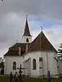 Biserica a fost construită, potrivit lui Miklós Endes, în anul 1198. Ea a menționată, împreună cu localitatea, pentru prima oară în hrisoave, în 1332 de S. Michaele. Ea are elemente arhitecturale romanice, gotice și baroce.