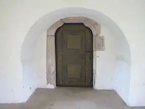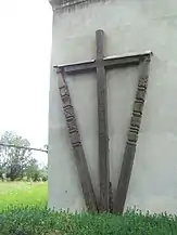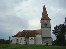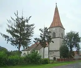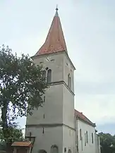 Sanctuarul semicircular al bisericii dedicate Sfintei Cruci și partea navei cu care se continuă sanctuarul sunt romanice. În secolul al XVI-lea a fost extinsă spre vest și a fost construit turnul. În afară de intrarea vestică, realizatâ în stil gotic târziu, a existat o intrare și în partea de sud a navei, dar la ultima reparație a fost zidită, astfel încât cadrul ei a dispărut, dar locul mai poate fi recunoscut.