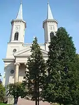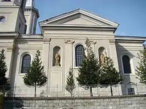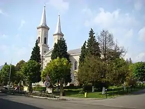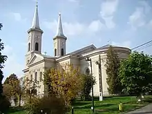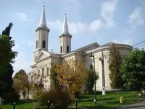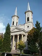 Biserica a fost construită între 1846-1858, în stil neoclasic după planurile lui Albin Tischler. Nava bisericii este închisă pe latura de est de un altar semicircular. Fațada principală a bisericii are un design monumental. Intrarea principală este închisă de un portic monumental cu timpan. În fața sa, pe un piedestal înalt, se află statuile Sf. Petru și Sf. Pavel.