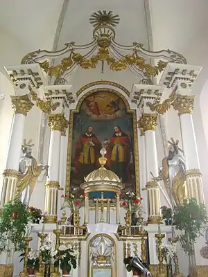Altarele vechi au fost înlocuite cu altare sculptate; la fel, și ferestrele au fost modificate. În mijlocul altarului principal se află sculpturi ale sfinților martiri Cozma și Damian, pe ambele părți adăugându-se sculpturi ale apostolilor Sf. Petru și Pavel. Dacă vă veți uita cu grijă prin biserică, veți găsi si o reprezentare artistică a regelui maghiar Matia.