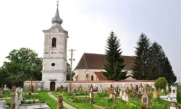 Biserica a fost construită în secolul al XIV-lea în stilul gotic, arhitectul fiind Margit Losonczi, în 1786 intervenind József Szendrei. Biserica a suferit diferite transformări în sec. XVI-XX, datorate mai ales stricăciunilor provocate de cutremurele ce au lovit zona. Clopotele datează din anul 1567. Picturile murale sunt inspirate de cele ale bisericii din Ghelința.
