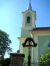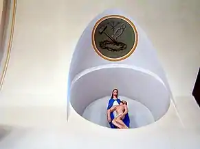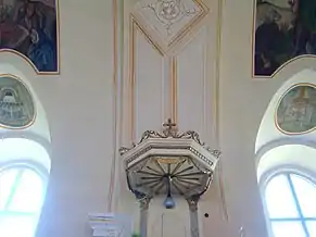 Sf. Ioan Nepomuk, patronul bisericii. Sus e Sf. Treime.jpg.webp)