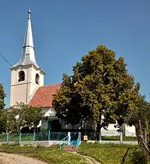 În 1333 avea biserică, preotul Pál fiind menționat în lista dijmelor papale. Odată cu răspândirea Reformei, locuitorii au trecut majoritar la unitarianism. Biserica medievală a fost demolată și o nouă biserică a fost construită pe locul ei în 1791. Se păstrează câteva elemente ale bisericii vechi: fereastra arcuită care se deschide deasupra intrării semicirculare a turnului, tocul de piatră al ușii de la intrarea de sud care amintește de ancadramentele goticului târziu, două chei de boltă păstrate sub amvon: una dintre ele era cheia de boltă a sanctuarului. Tavanul este din 1796, iar turnul a fost finalizat în 1801.