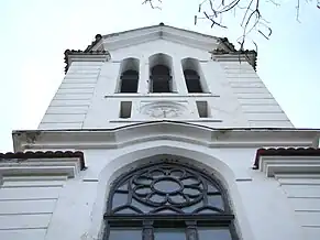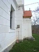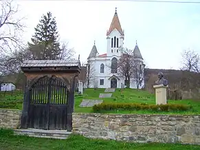 În fața bisericii se află bustul lui Gálffy Mihály (1817-1854), originar din Firtănuș, martir al secuilor, executat de austrieci pentru participarea la Complotul lui Makk.