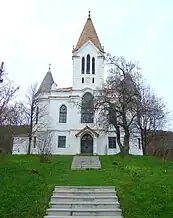 Este a patra biserică a localității, prima fusese construită în anul 1751. Cea de a doua a fost construită în 1794, dar după numai trei decenii era deja ruinată. Construcția din piatră a celei de a treia biserici a început în anul 1826, însă datorită dificultăților finnciare a fost finalizată abia în 1834. Datorită alunecărilor de teren, biserica și turnurile sale nu au rezistat decât două decenii. În anul 1860 turnurile s-au dărâmat, între 1861 și 1893 s-au făcut reparații la turnuri de patru ori, iar în cele din urmă, în 1903 biserica a fost demolată. Orga bisericii, construită în 1865, a fost salvată și mutată în biserica actuală.