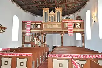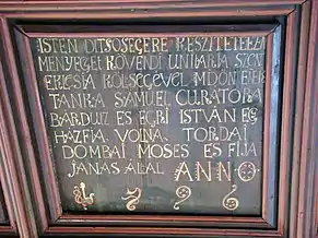 Biserica datează din secolul al XIII-lea și a fost reconstruită în stil gotic în secolul al XV-lea. Inițial romano-catolică, după Reforma Protestantă a trecut în serviciul cultului unitarian (1570). Are tavan cu casete pictate (1721, 1796, 1913), 166 casete au motive florale.