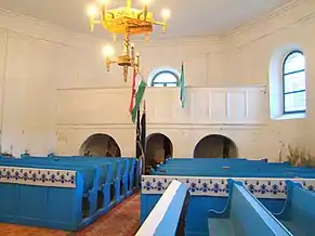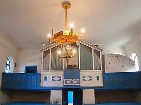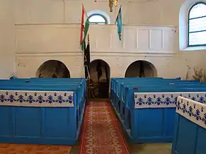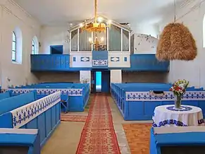 Biserica a avut un tavan casetat, care a fost îndepărtat în 1932. Coroana amvonului a fost realizată în 1830. Orga actuală a fost construită în 1850 și reparată în 1942, 1958 și 1982. Clopotul mare a fost turnat în 1862 și are inscripția „A RAVAl UNITÁRIA EKLÉSIA ÖNTETTE 1862- BE SEGESVÁRI LOOTZ FRIEDRICH ÁLTAL". Clopotul mic datează din 1936. Orga și clopotele sunt opera unor meșteri sași[3].