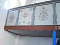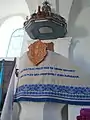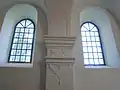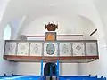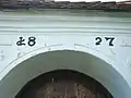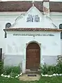 Documentele bisericești relatează că și deasupra intrării din partea clopotniței se afla o inscripție: „építtetett (…), Isten fogadd már ezt szárnyad oltalmába 1801.” („s-a construit ..., Doamne primește-l în ocrotirea aripilor tale 1801”)