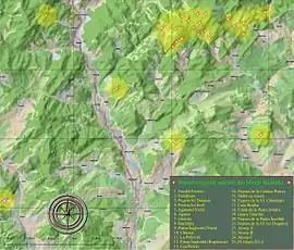 ![]() Lăcașuri ![]() Dispunerea geografică a vestigiilor rupestre în arealul Munților și Subcarpaților Buzăului | |