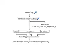 Cheia publică este utilizată pentru criptarea unui text, care apoi nu poate fi decodificat decât folosind cheia privată corespunzătoare. Criptarea cu cheie publică este folosită în tranzacțiile cu Bitcoin pentru a asigura confidențialitatea.