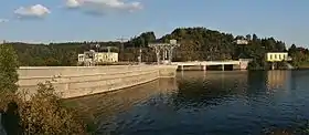 Construit între anii 1926 și 1932 cu o înălțime la coronament de 65 m, și o lungime de 205 m, barajul acumulează o cantitate de 215 milioane m3 de apă, fiind lacul de acumulare cu cel mai mare volum de apă din Germania. Construirea lui a apărut ca o necesitate de a rezolva problema șomajului din regiune, fiind angajați șomerii din Turingia și Saxonia pe un timp de 6 luni. Pentru ușurarea transportului a fost construită special pentru baraj o cale ferată îngustă, care a rămas și după terminarea barajului mai mulți ani în funcțiune. Spațiul necesar pentru lacul de acumulare s-a realizat prin mutarea domiciliului a ca. 700 de locuitori din regiunea lacului. Lacul are lungime de 28 km și ocupă o suprafață de 9,2 km2. Cantitatea de curent electric produsă de hidrocentrală este de 80 Megawatt.