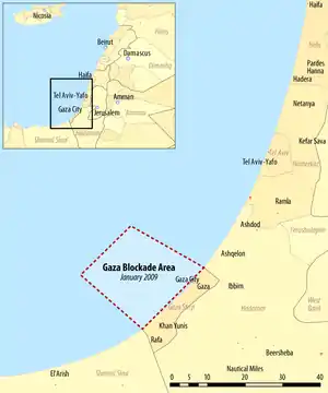 - 23 august 2008 - reprezentanți internaționali ai drepturilor omului a aterizat pe coasta Fâșiei Gaza în solidaritate cu poporul palestinian și au protestat împotriva blocadei israeliene.[13]