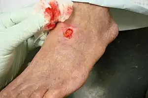![]() Un ulcer provocat de insuficiența arterială la o persoană cu afecțiune arterială periferică severă | |