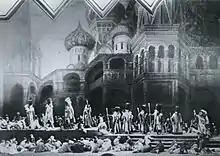 ![]() F. I. Șaliapin în rolul lui Boris Godunov, pictură de A. I. Golovin (1912) | |