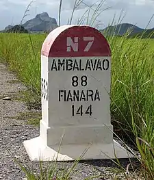 Bornă kilometrică în Madagascar (vechiul tip francez, din piatră)