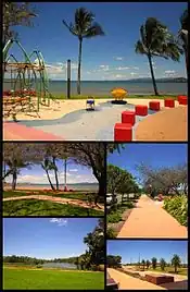 Top: Playground at Bowen Foreshore, Middle left: Bowen Foreshore, Middle right: Walkway along Santa Barbara parade, Bottom left: Muller's Lagoon, Bottom right: Bowen Skatebowl | |||||||