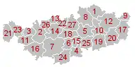 Brabantul Valon conține 27 de comune din care 5 au titlul de oraș.