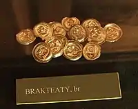 - Bracteați de tip A (circa 88 de specimene): arată fața unei ființe umane, după un vechi model al monedelor imperiale;