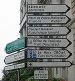 Bretania este o regiune aparte față de restul Franței, fiind alături de Țara Galilor, Scoția, Irlanda și Galicia din Spania singurele regiuni cu populații de origini celtice. Franceza este singura limbă oficială, dar cele două limbi regionale cu toate că nu au nici un statut oficial, sunt sprijinite de autoritățile regionale, în limitele constituției. Limba bretonă este foarte puternică în regiunea de vest, dar este răspândită și în restul regiunii, este o limbă celtică puternic înrudită cu limba galeză vorbită în Țara Galilor și cu limba cornish, vechea limbă celtică vorbită în Peninsula Cornwall din Marea Britanie. A doua limbă regională este limba gallo, vorbită în partea de est a regiunii, care este o limbă romanică, una dintre limbile oïl cu foarte multe influențe celtice. În ultimul timp, au apărut foarte multe însemne bilingve, dar marea majoritate sunt și în bretonă, în detrimentul limbii gallo, care nu este atât de vizibilă.